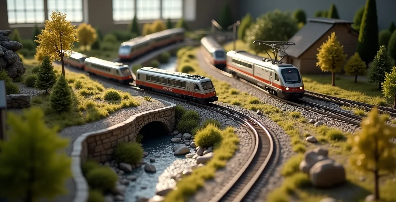 Cette distinction est fondamentale. Elle permet de faire circuler, arrêter et manœuvrer plusieurs convois de manière totalement indépendante sur le même circuit. Une petite gare de triage devient un véritable hub d’activités : une locomotive peut assembler une rame pendant qu’un autorail dessert le quai principal. Loin d’être une complexification, le numérique est l’outil qui libère le potentiel opérationnel d’un tracé compact. Dans un contexte où le transport ferroviaire connaît une forte dynamique, avec par exemple une augmentation de 6% de l’offre ferroviaire effective en 2024 en France, recréer cette complexité à l’échelle miniature est au cœur de la passion.
