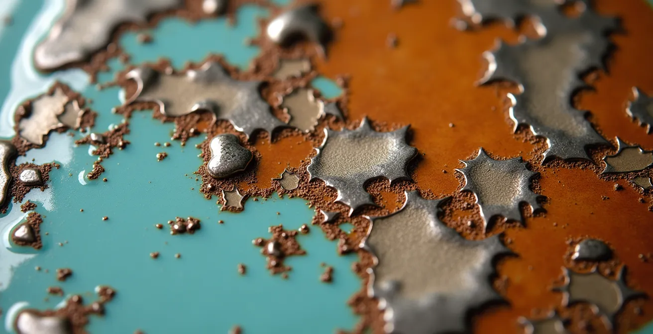 Les boîtes à biscuits en tôle lithographiée partagent avec les plaques émaillées une vulnérabilité à la rouille, mais leur traitement exige une délicatesse encore plus grande. Contrairement à l’émail vitrifié, le décor d’une boîte ancienne est une impression fragile. Une intervention trop agressive peut effacer le dessin et anéantir la valeur de l’objet. L’objectif n’est donc pas d’éradiquer la rouille à tout prix, mais de stopper sa progression tout en préservant l’intégrité de la lithographie. La première étape consiste à évaluer le degré de corrosion : une rouille de surface (piqûres) ne se traite pas comme une rouille perforante.